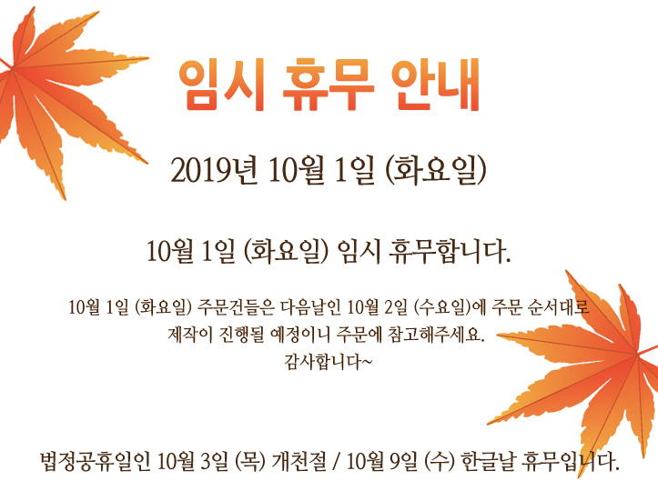 [°øÁö] 2019³â 10¿ù 1ÀÏ (È¿äÀÏ) Àӽà ÈÞ¹« ¾È³»ÀÔ´Ï´Ù.