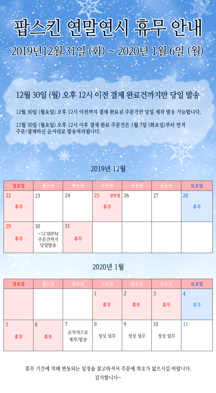 [°øÁö] 2019³â ¿¬¸», 2020³â ¿¬ÃÊ ÈÞ¹« ¾È³»ÀÔ´Ï´Ù.