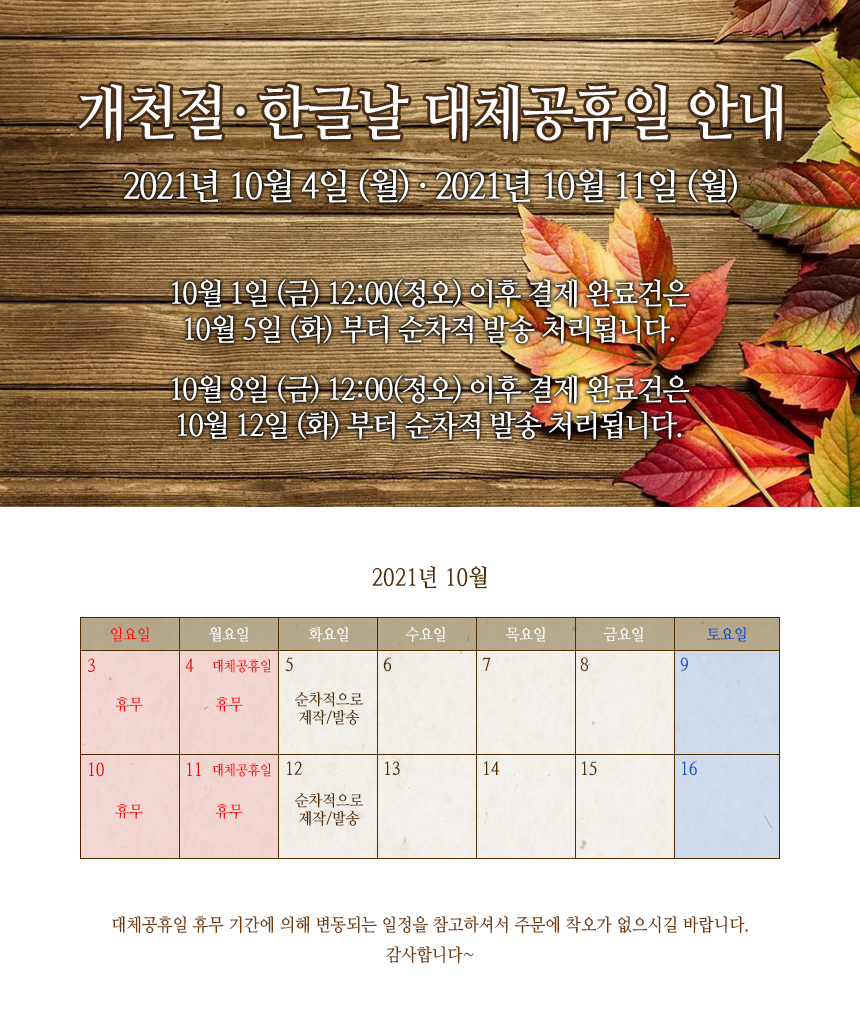 2021³â °³ÃµÀý/Çѱ۳¯ ´ëü°øÈÞÀÏ ¿µ¾÷ ÀÏÁ¤