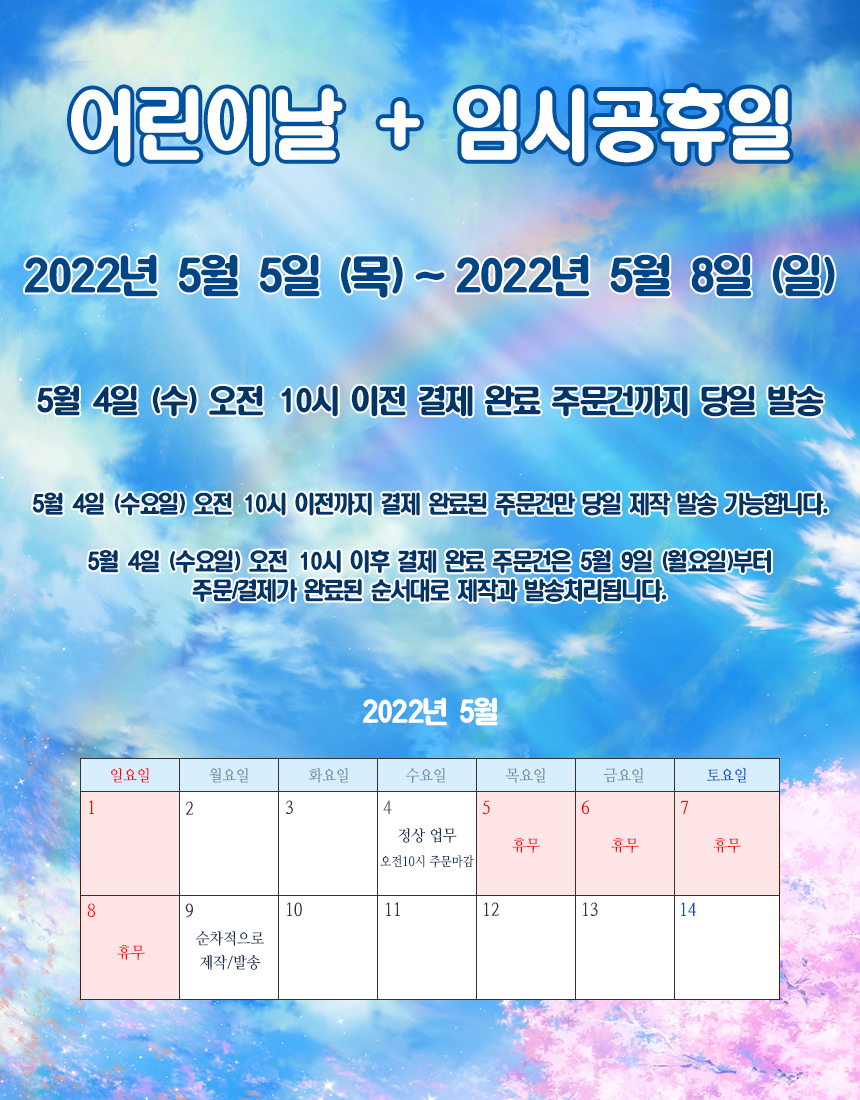 2022³â ¾î¸°À̳¯ + ÀӽðøÈÞÀÏ ÈÞ¹« ¹× ¹è¼Û ÀÏÁ¤ ¾È³»ÀÔ´Ï´Ù.